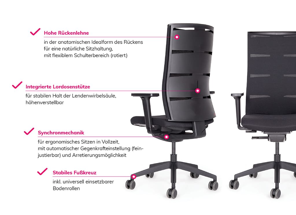 Moderner Netzrücken Bürostuhl zum Bestpreis: Der agilis matrix Start-Up ist das ideale Einstiegsmodell in die Profi-Klasse der lento Bürostühle für eine gesunde Sitzhaltung. Für alle, die Wert legen auf ergonomisches Sitzen, Qualität made in Germany … und einen günstigen Preis. Denn der Bürostuhl mit Netzrücken erfüllt alle Anforderungen an einen modernen, ergonomischen Bürostuhl – mit dem allerbesten Preis-Leistungsverhältnis! Das ist Qualität aus Deutschland mit 10 Jahren Herstellergarantie!