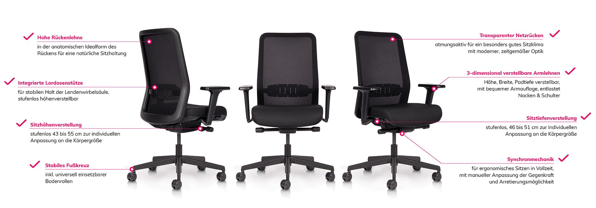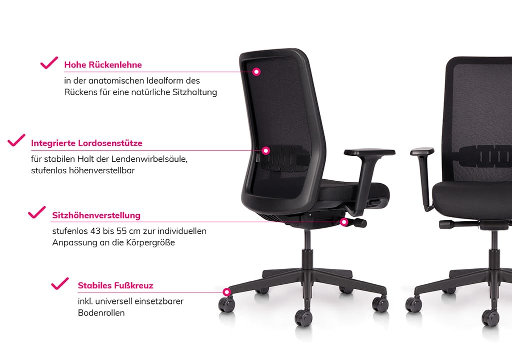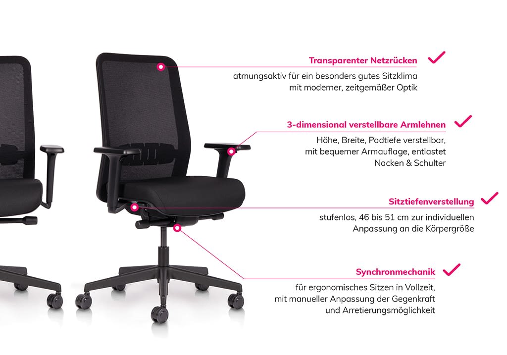 Der komfortable Netzrückenstuhl für Büro oder Homeoffice bietet nicht nur ein hervorragendes Preis-Leistungs-Verhältnis, sondern erfüllt auch alle Erwartungen an einen ergonomischen Bürostuhl. Er verfügt über eine bequeme Sitzfläche, eine atmungsaktive Netzrückenlehne, Lendenstütze und Armlehnen. Dank der hochwertigen Synchronmechanik ermöglicht er dynamisches Sitzen und bietet zahlreiche Anpassungsmöglichkeiten für individuellen Komfort. Zudem überzeugt er durch hochwertige Materialien, Langlebigkeit … und einen besonders attraktiven Preis.