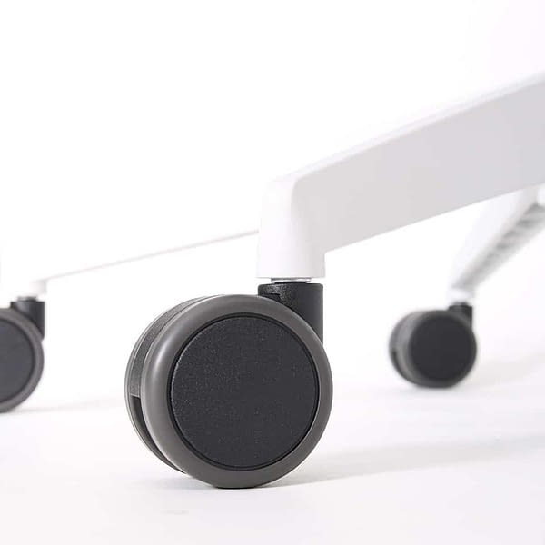 Die Gummierung hat darüber hinaus eine rutschhemmende Wirkung, die sicherstellt, dass der ergonomische Bürostuhl auf den relativ glatten Oberflächen ausreichend Halt hat. Gleichzeitig senkt sie Rollgeräusche und sorgt für eine höhere Laufruhe.
